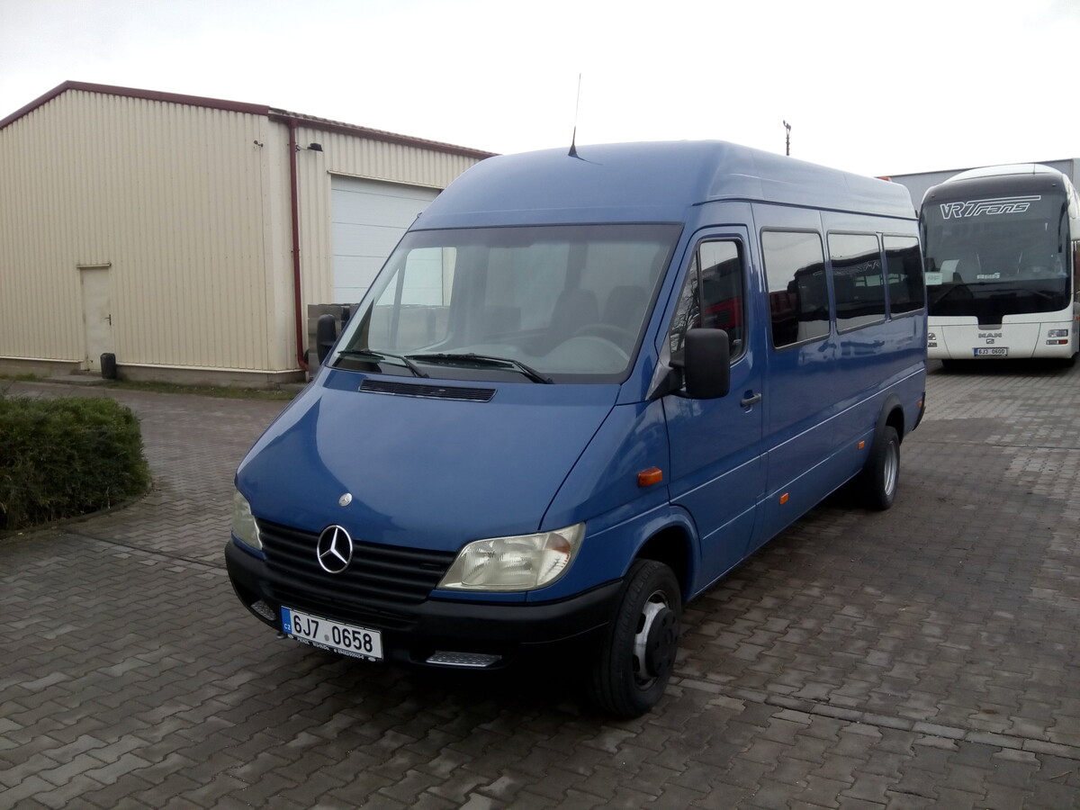 Minibus Mercedes s obsaditelnosti 16 míst je vhodný pro přepravu menších skupin osob na různé sportovní a společenské akce.
